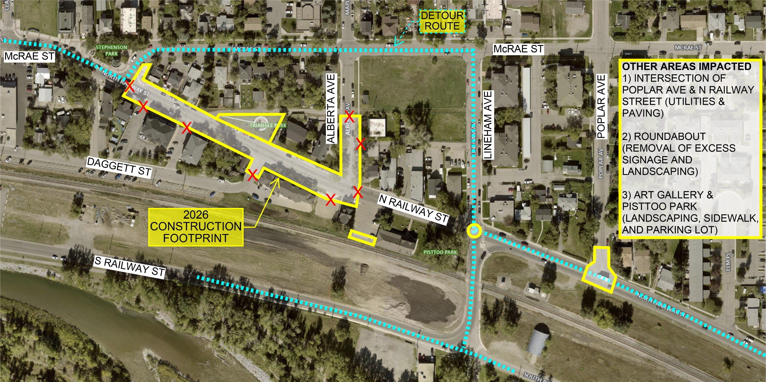 - Temporary closure of Poplar Avenue at the intersection of North Railway Street and Poplar Avenue